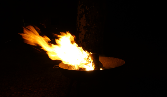Zwischen Tag und Nacht, zwischen dem Gewesenen und dem Kommenden. Das Feuer brannte zwischen Gemeindesaal und Kirchengebäude und inspirierte zu Gedanken über die Übergänge im eigenen Lebensweg. Wie die Wärme zur Glut und das Licht zur Dunkelheit wurde, so wurden Veränderungen im eigenen Leben nachgespürt. Gewärmt und beschienen von den Flammen war zu erleben, wie ein Übergang ein Teil einer Verwandlung ist. Im Feuer verbrennt Altes und zugleich entsteht Neues.