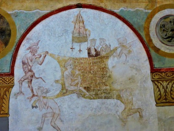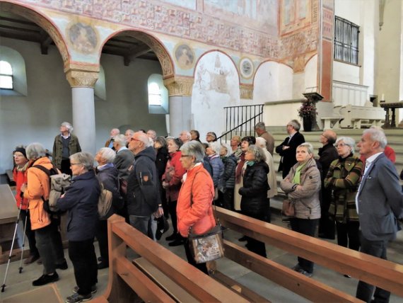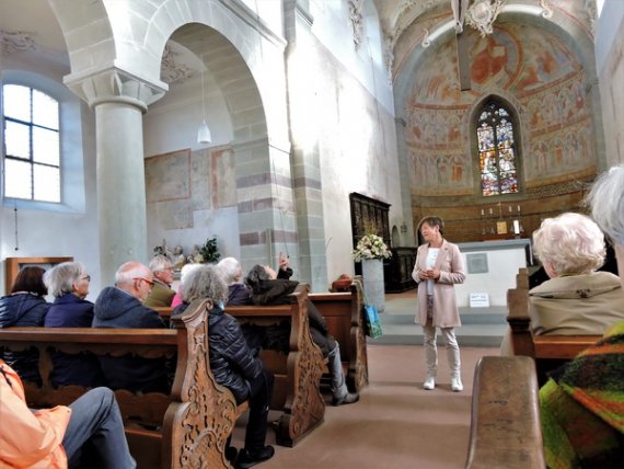 Pünktlich erreichten wir unser erstes Ziel, die Abteikirche des im Mittelalter berühmten Klosters Reichenau, das Münster St. Maria und Markus. Der sehr kompetente Führer verstand es gut, Wissenswertes humorvoll und mit Anekdoten gewürzt vorzutragen. Wie schnell dabei doch eine Stunde vergeht! Draußen wartete bereits die Führerin, die uns zur frühromanischen Georgskirche begleitete. Sie ist berühmt für ihre Wandmalereien aus dem 10. Jahrhundert. Spätestens jetzt versteht man, dass die UNESCO die gesamte Insel im Jahr 2000 zum Weltkulturerbe erklärt hat.