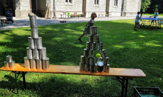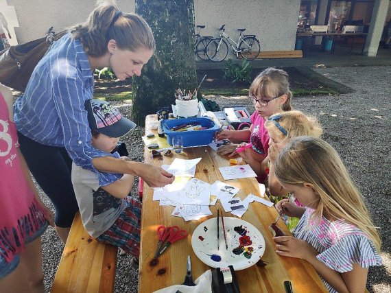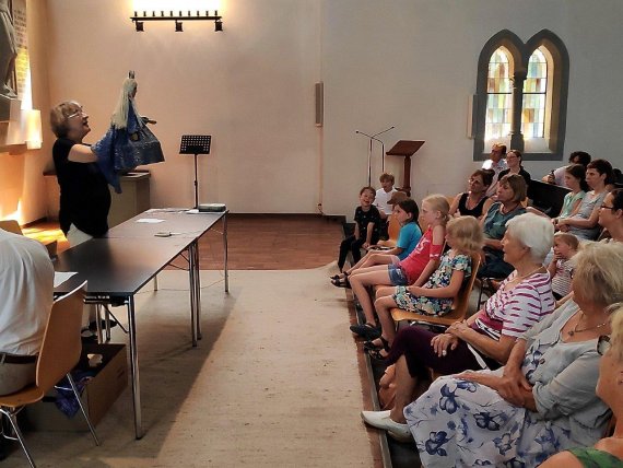 Groß und Klein fanden nun ihre Unterhaltung. Während Gemeindepädagogin Yvonne Queder einige Spielstationen für die Kinder bereit stellte, kamen die Musikliebhaber durch die Darbietungen des K & K (Kammer- und Keller)-orchesters unter der Leitung Martin Deurings auf ihre Kosten, zumal er einiges Anekdotisches einstreute. Dazwischen luden das Salat- und Kuchenbüffet zu genüsslicher Pause ein. Elisabeth Wolber, die heuer 40-jähriges Jubiläum ihres Puppentheaters Götzis feiert, sprach alle Altersgruppen an. Ihre selbstgefertigten Figuren erwachten in den Bewegungen und der Sprache ihrer Meisterin zu magischem Leben. Nur Ausschnitte aus den berühmten Grimms Märchen genügten, um sich tief in den Geschichten um bösartige, witzige oder tragische Typischen zu finden.