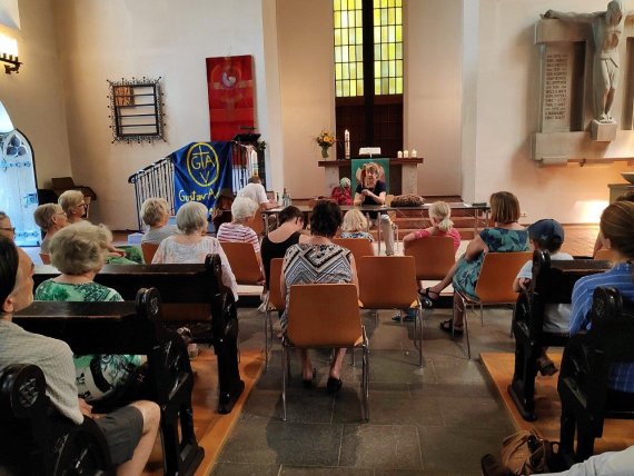 Der letzte Junitag zeigte sich in strahlender Form und bot optimale Bedingungen zum diesjährigen Sommerfest. Schon der Gottesdienst war von abwechslungsreicher Aktivität geprägt. Pfarrer Stoffers brachte sogar manchen Kanon unter tatkräftiger Unterstützung von Organistin Traudi Heinz zum Laufen. „Bald anders“ unter Georg Klapper trug ebenfalls zur musikalischen Vielfalt bei. In der Zwischenzeit waren der Gasgrill angeworfen und die Bierschankanlage installiert, sodass die hungrigen Besucher nahtlos vom Geistigen zum Lukullischen wechseln konnten.