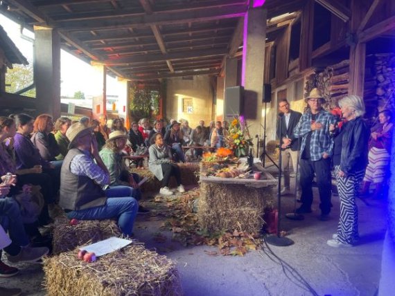 Unter dem Motto „Happy hour in der Danke-Bar“ stand dieses Mal am 7. Oktober (in der Scheune des Bauernhofs auf dem Gelände der Riedenburg) das Thema Dankbarkeit mit Blick auf die Licht- und Schattenseiten des Lebens im Mittelpunkt. „Zu Ernten und Danken passte aus unserer Sicht eine Scheune mit Strohballen und Countrymusik. Zudem waren wir gespannt, was unsere Gäste Ilga SAUSGRUBER, die sich u.a. im Bereich Kinderhospiz engagiert, und Johannes PIRCHER-SANOU, Leiter der Bewährungshilfe "Neustart", aus ihrer persönlichen Sicht wie auch mit Blick auf ihre Erfahrungen im Umgang mit Krankheit, Tod oder Gefängnis erzählen werden“, so Küng, Berger-Holzknecht und Stoffers.