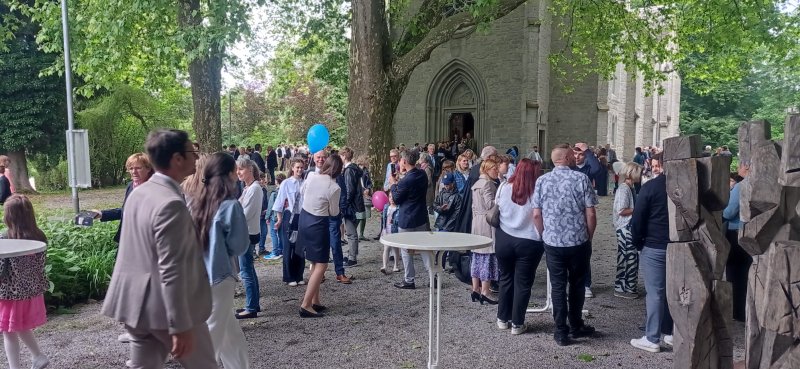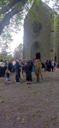 Im Anschluss an den Gottesdienst gab es ein herzliches Beisammensein auf dem Kirchplatz. Bei Getränken und guten Gesprächen wurde gemeinsam angestoßen und der besondere Tag in geselliger Runde ausklingen gelassen.