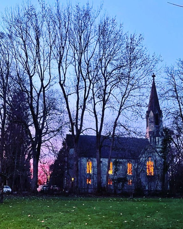 Am 9. Dezember trafen wir uns gegen 19:15 Uhr wieder zwischen Kirche und Gemeindesaal. Wir entzündeten das monatliche Männerfeuer. Nebeldunst umhüllte uns. Das Holz war etwas feucht geworden.