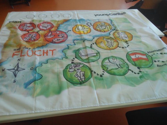 Der zweite Teil des Workshops beschäftigte sich dann mit dem Thema 'Flucht'. Die beiden Referentinnen wurden begleitet von vier Männern, die nach Österreich geflohen sind. Sie haben uns von ihrer Flucht erzählt und wir konnten ihnen Fragen stellen, die wir im Vorfeld des Workshops im Unterricht vorbereitet hatten. Die Berichte und Geschichten der Männer berührten uns noch viel mehr als die Informationen, die man sonst nur aus dem Radio/den Medien mitbekommt. In den Kleingruppen erzählten die geflohenen Männer über ihre mitunter schlimmen Erfahrungen auf der Flucht, aber auch über ihr früheres Leben, ihre Familien und ihr Leben heute in Vorarlberg.