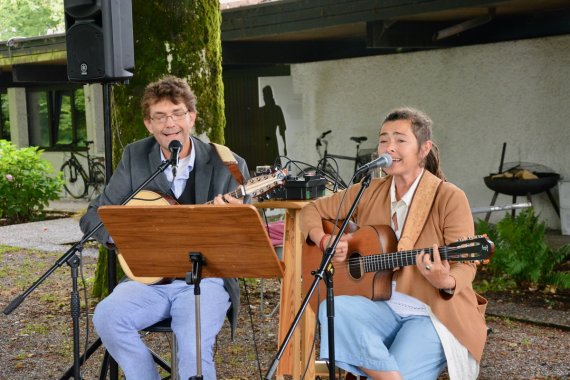 Danach ging es dann mit Grillwurst, vegetarischen Spießen, Salaten, Kuchen und Kaffee weiter. Für die musikalische Unterhaltung sorgte das Gitarren- und Gesangsduo Simone & Peter, auch für Unterhaltung für die Kleinen war bei Spiel, Basteln und Sport gesorgt.
