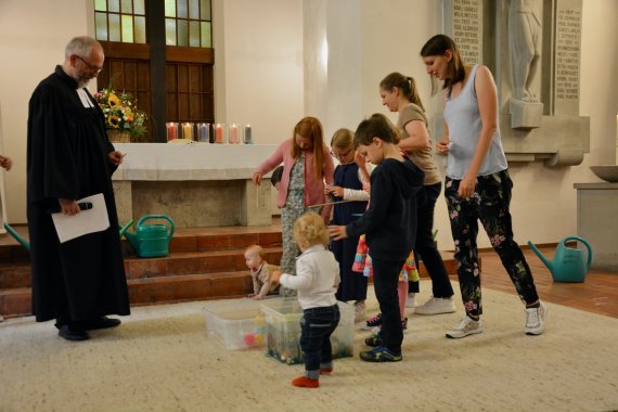 Sonntag in der Früh gab es noch leichten Nieselregen, aber das hinderte „klein & Groß“ nicht daran, zu einem speziellen Gottesdienst zu kommen. Zur Tauferinnerung waren besonders die Zweitklässler:innen und die Kinder eingeladen, die im Laufe des vergangenen Schuljahres getauft worden waren – selbstverständlich mit ihren Familien. Mehr als hundert Besucher:innen waren gekommen und konnten diesen besonderen Gottesdienst miterleben.