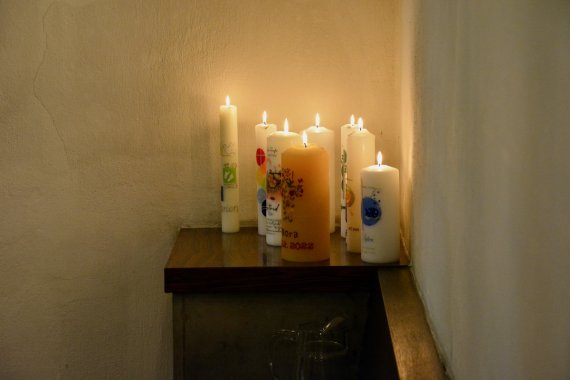 Am 9. Dezember trafen wir uns gegen 19:15 Uhr wieder zwischen Kirche und Gemeindesaal. Wir entzündeten das monatliche Männerfeuer. Nebeldunst umhüllte uns. Das Holz war etwas feucht geworden.