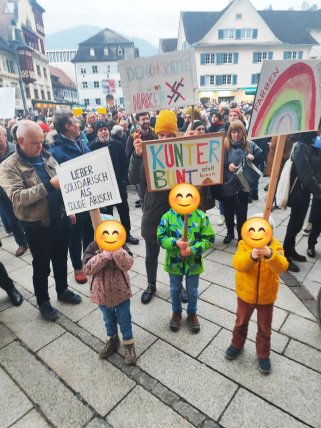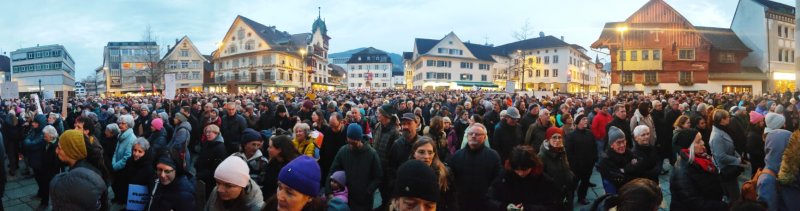 Unter dem Motto ‚Nie wieder ist jetzt! Für Demokratie und Menschenrechte‘ fand am Sonntagabend (18.02.2024, 17.30 Uhr, ca. 60 Minuten) in Dornbirn eine Demonstration statt, an der zwischen 3000 und 4000 Menschen teilgenommen haben.