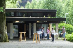 Der Gemeindesaal wurde 1976 errichtet. Der Entwurf des verantwortlichen Architekten Hans Purin (einstöckig, quadratisch) berücksichtigt die Geschichte des Geländes als römisches Siedlungsgebiet. Genutzt wird der Saal v.a. für Vorträge, Gruppentreffen und Gemeindekreise wie z.B. Sitzungen der Gemeindevertretung, KonfirmandInnen-Treff oder auch Kirchen-Café (einmal im Monat nach dem Sonntags-Gottesdienst). Sollten Sie Interesse an einer Nutzung des Gemeindesaales haben, melden Sie sich bitte in unserem Büro.