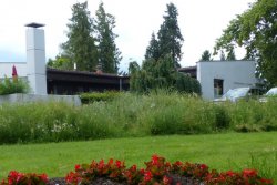 An den Saal schließt sich das geräumige eingeschossige Pfarrhaus an, in dem der Pfarrer mit seiner Familie wohnt und das - ebenfalls die römische Baustruktur/Architektur berücksichtigend - nach Süden hin durch einen als Atrium/Innenhof angelegten Gartenbereich begrenzt wird.